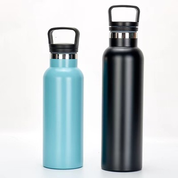 Botella de agua deportiva de doble pared de boca ancha, termo al vacío, logotipo personalizado de acero inoxidable con nueva tapa de paja de mango ancho