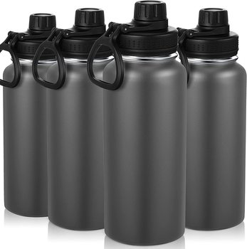 Termo de agua de acero inoxidable con tapa a prueba de fugas, cantimplora de Metal estándar con mango giratorio amplio, 32 oz